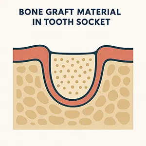 A bone graft involves gently placing natural or synthetic bone material into the empty tooth socket. This material acts as a framework that encourages your body to grow new bone in the area, allowing the best chance for an implant to be placed in the future.